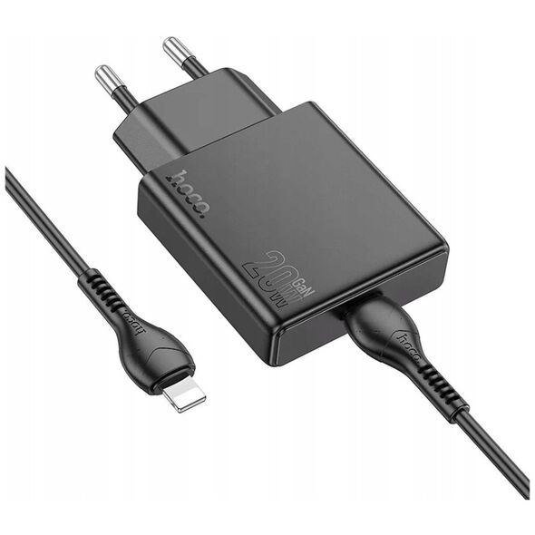 Φορτιστής τοίχου για τηλέφωνο Hoco Slim USB C QC PD 30W + καλώδιο USB C σε Lightning N37 μαύρο