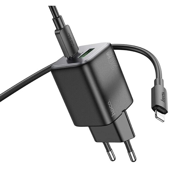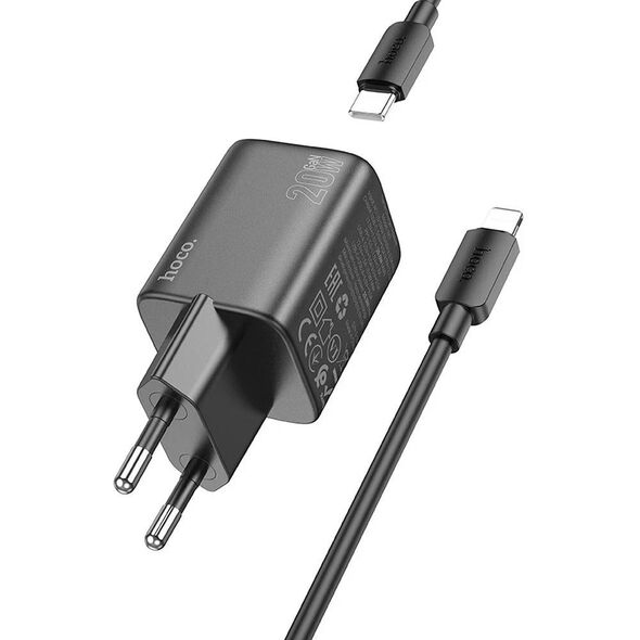 Φορτιστής τοίχου για κινητό τηλέφωνο HOCO USB A + USB C QC PD 3A 20W + καλώδιο USB C σε Lightning N41 μαύρο