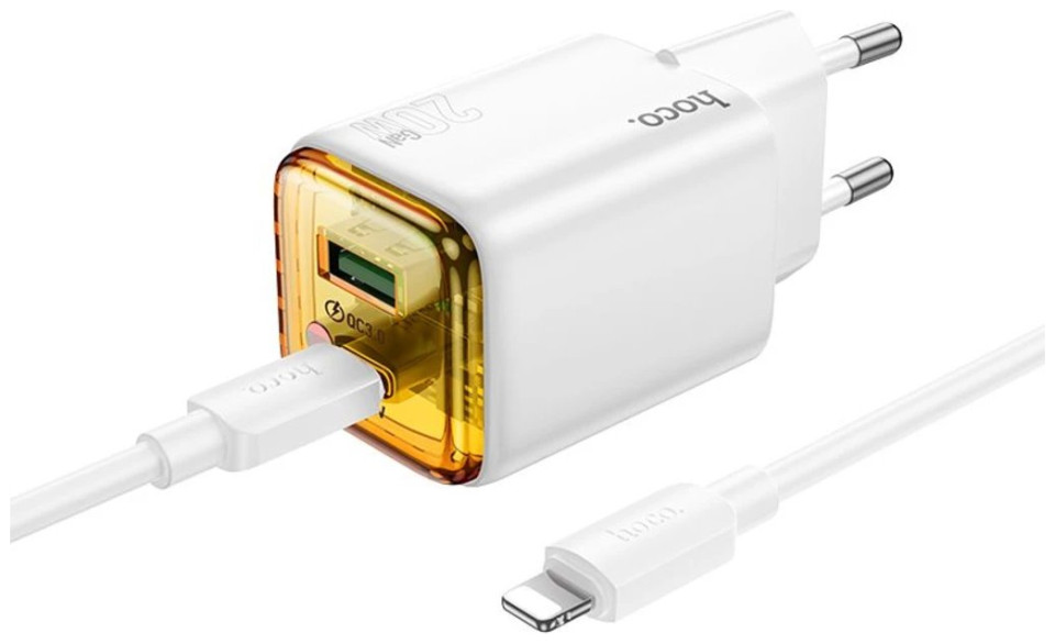 Φορτιστής τοίχου για τηλέφωνο HOCO USB A + USB C QC3.0 PD 3A 20W + καλώδιο USB C σε USB C N52 λευκό
