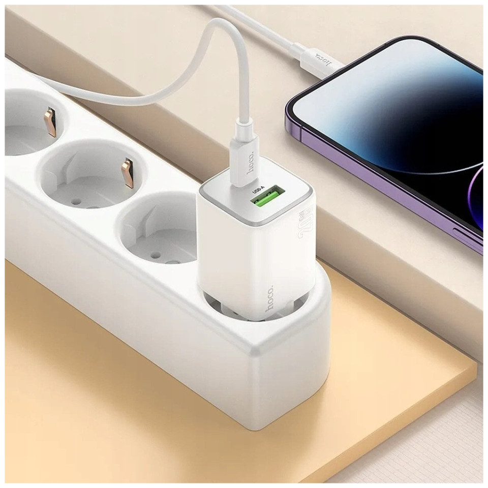Φορτιστής τοίχου για τηλέφωνο HOCO USB A + USB C QC3.0 PD 3A 20W N41 λευκή