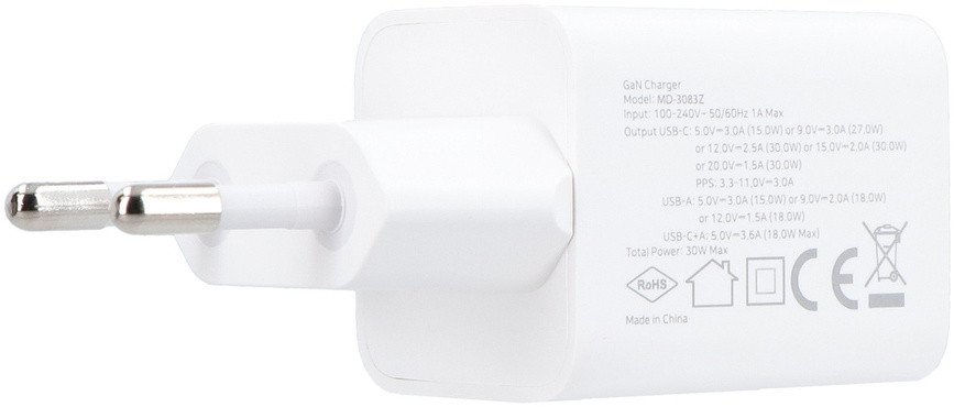 Φορτιστής τοίχου GaN 30W USB-A USB-C QC PD Encore Energy MD-3083Z standard