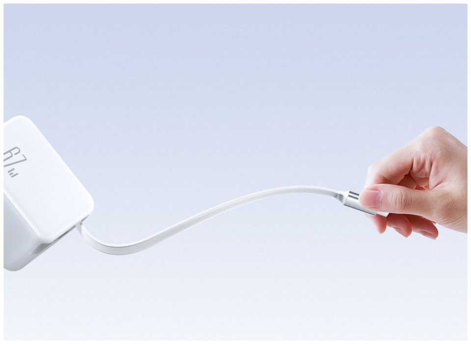 Φορτιστής τοίχου JOYROOM JR-TCL06 67W GaN με ενσωματωμένο αναδιπλούμενο καλώδιο USB-C - λευκό