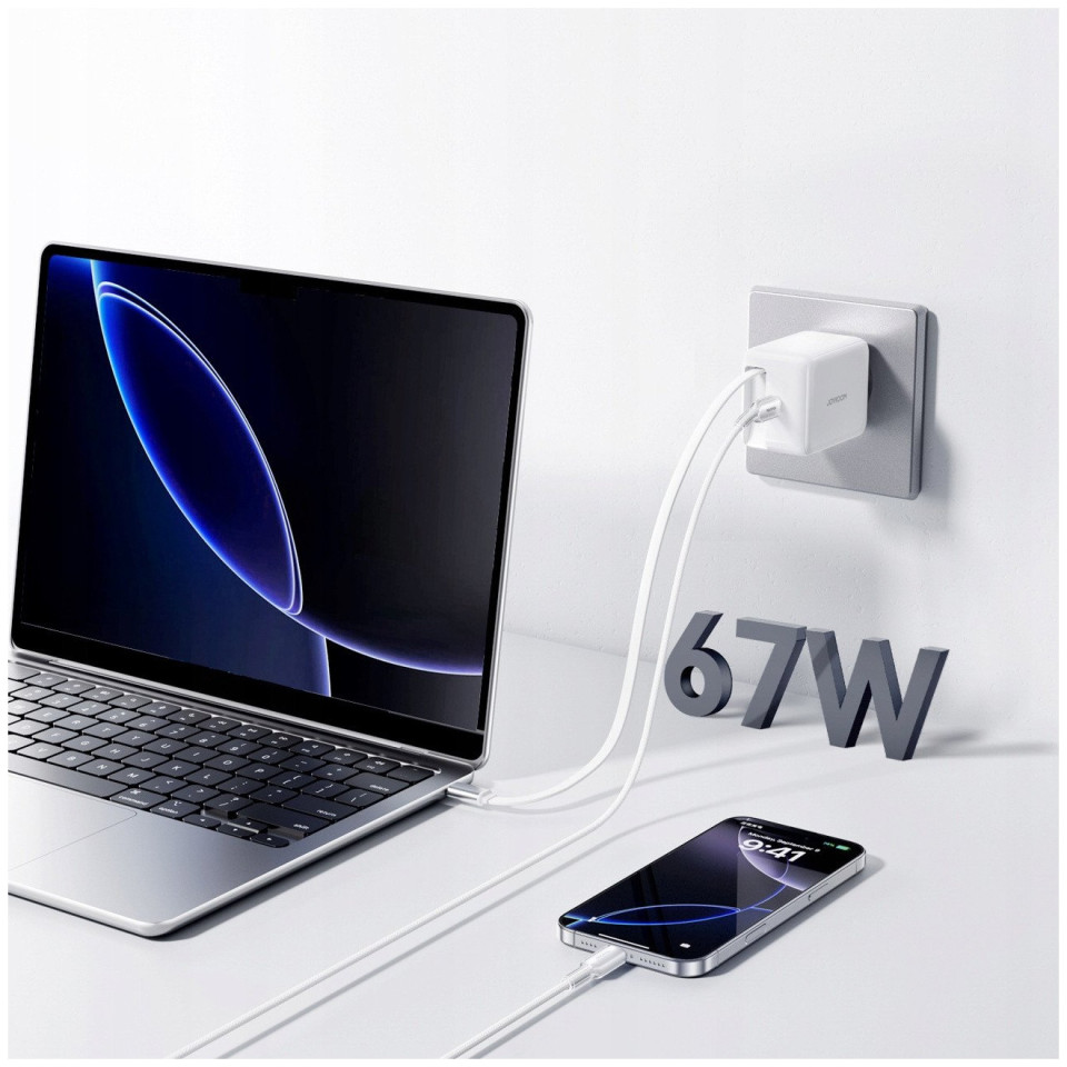 Joyroom JR-TCL06 potrafi naładować MacBooka Air do 50% w 30 minut, gwarantując ekspresowe uzupełnianie energii także w smartfonach i tabletach.