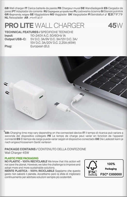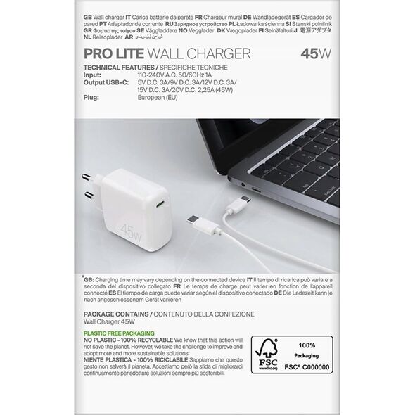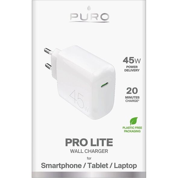 Φορτιστής τοίχου Puro PROLITE 45W USB-C - λευκός