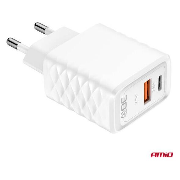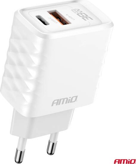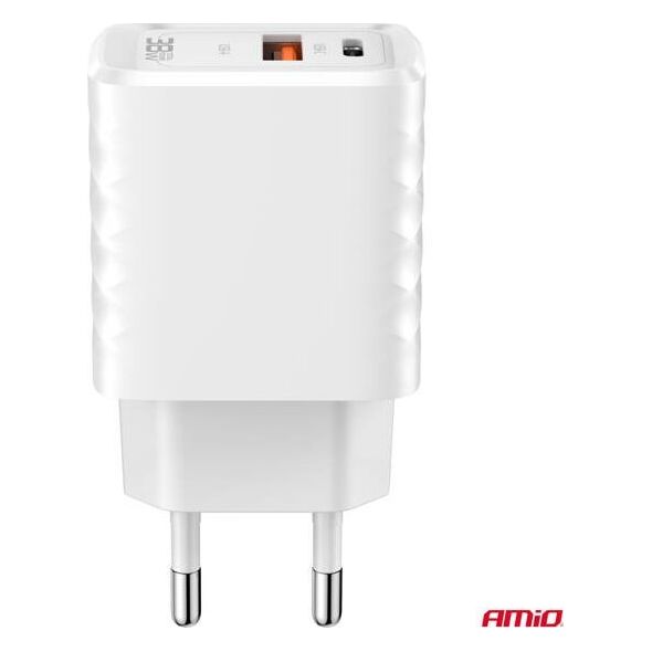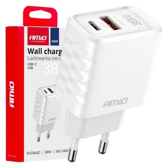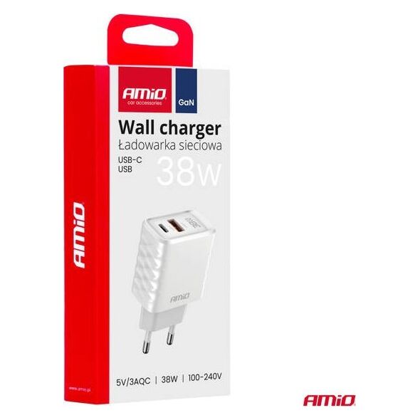 Φορτιστής τοίχου Quick Charge GaN 38W USB-A + USB-C AMIO-04287