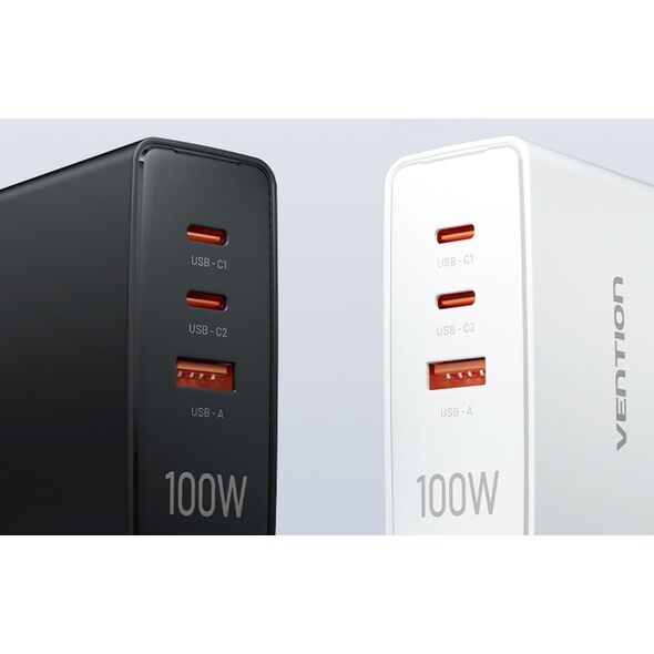 Φορτιστής τοίχου Vention FEGB0-EU 2xUSB-C 1xUSB-A 100W/100W/30W GaN (μαύρο)