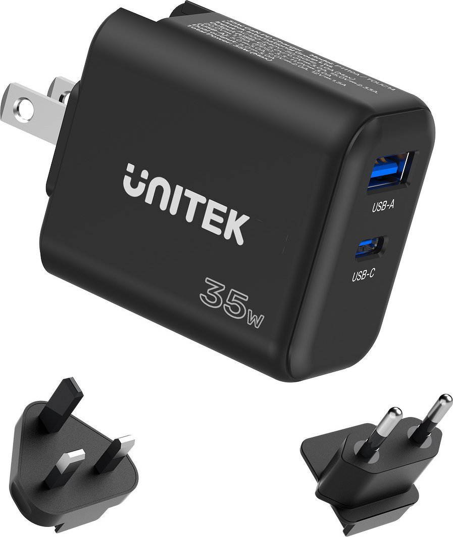Ο φορτιστής Unitek P1119A είναι εξοπλισμένος με ένα σετ εναλλάξιμων βυσμάτων, ώστε να μπορείτε να τον συνδέσετε σε οποιαδήποτε πρίζα. ΗΠΑ, ΗΒ, Κύπρος ή μήπως Πολωνία; Τώρα μπορείτε να ταξιδέψετε σε όλο τον κόσμο με μόνο έναν φορτιστή στο σακίδιό σας!