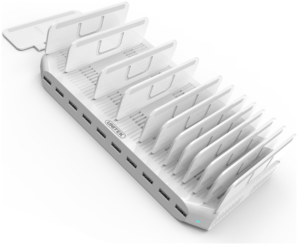 Σταθμός φόρτισης με 10 θύρες USB με ισχύ 96W, σας επιτρέπει να φορτίζετε φορητές συσκευές με ρεύμα έως και 2,4A. Οι ειδικά σχεδιασμένες υποδοχές σάς επιτρέπουν να τοποθετείτε άνετα το smartphone ή το tablet σας στο σταθμό και το ρυθμιζόμενο διαχωριστικό σας επιτρέπει να προσαρμόσετε το κατάλληλο πλάτος. Y-2172 εξοπλισμένο με επαγγελματικά τσιπ ελέγχου συμβατά με το πρότυπο BC 1.2. Το πρωτόκολλο BC 1.2 ελέγχει έξυπνα τη φόρτιση, διασφαλίζοντας την κατάλληλη τάση, αποσυνδέοντας την παροχή ρεύματος όταν η συσκευή είναι ήδη φορτισμένη, τη μέγιστη δυνατή φόρτιση και πολλά άλλα στοιχεία που παρατείνουν τη διάρκεια ζωής των μπαταριών και διατηρούν την αρχική τους χωρητικότητα σε κάθε δωμάτιο γραφείου, όπου εργάζονται περισσότερα από ένα άτομα, αίθουσες συνεδριάσεων και σπίτια με περισσότερα tablet και smartphone Κύρια χαρακτηριστικά: - Γρήγορη και ασφαλής φόρτιση χάρη στην τεχνολογική υποστήριξη BC1.2 - Ρεύμα εξόδου έως 2,4A - Προστασία υπερφόρτισης - Ειδικά σχεδιασμένες υποδοχές που επιτρέπουν την τοποθέτηση της συσκευής φόρτισης στο σταθμό - Διαχωριστής που σας επιτρέπει να ρυθμίσετε το πλάτος (11 τεμάχια) - Στερεό και σταθερό περίβλημα - Μέγιστη φόρτιση μέχρι. έως 10 συσκευές ταυτόχρονα - LED διόδου που δείχνει την κατάσταση φόρτισης - Ιδανικό για σχολεία, εστιατόρια, γραφεία, σπίτι, όπου υπάρχουν πολλές φορητές συσκευές σε ένα μέρος.