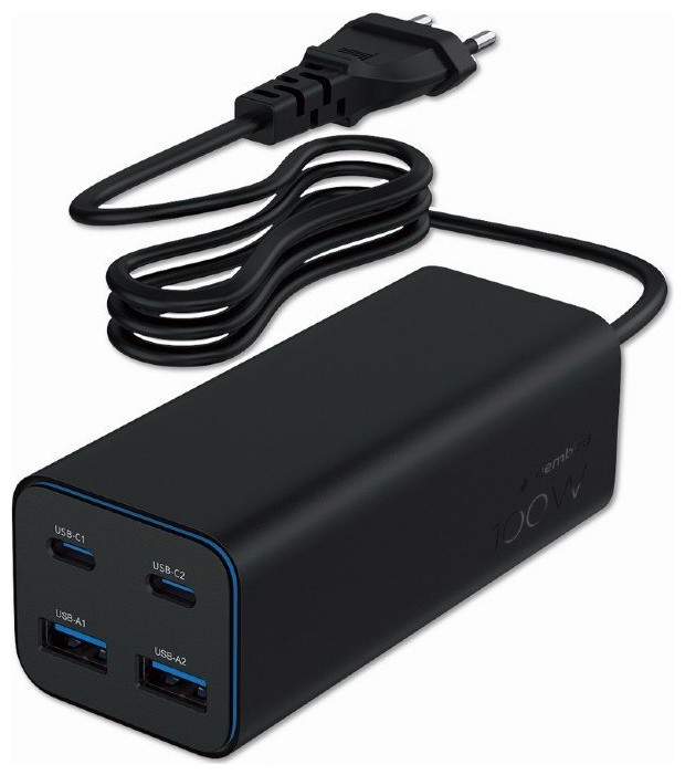 Καθολικός φορτιστής 100W GaN 2xUSB-A 2xUSB-C γρήγορη φόρτιση μαύρη