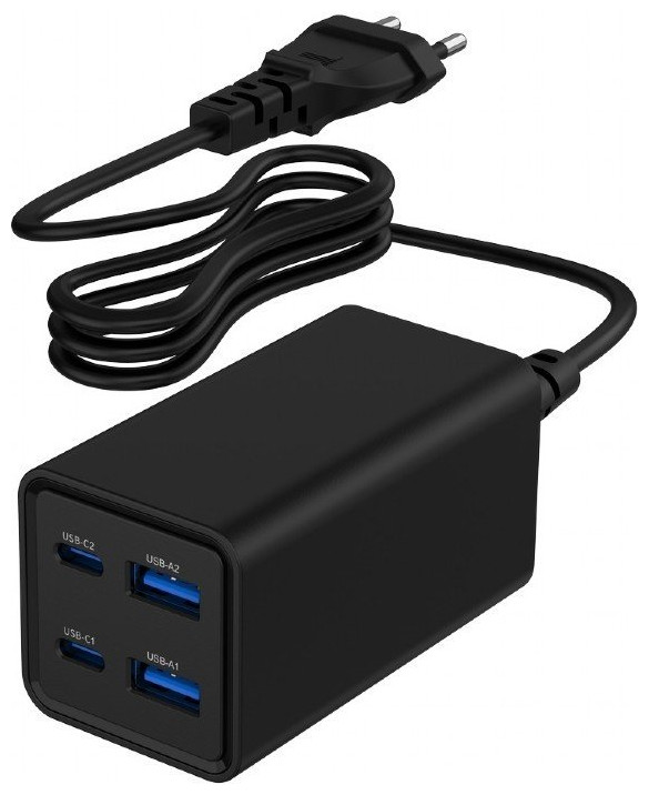 Καθολικός φορτιστής 65W GaN 2xUSB-A 2xUSB-C γρήγορη φόρτιση μαύρο