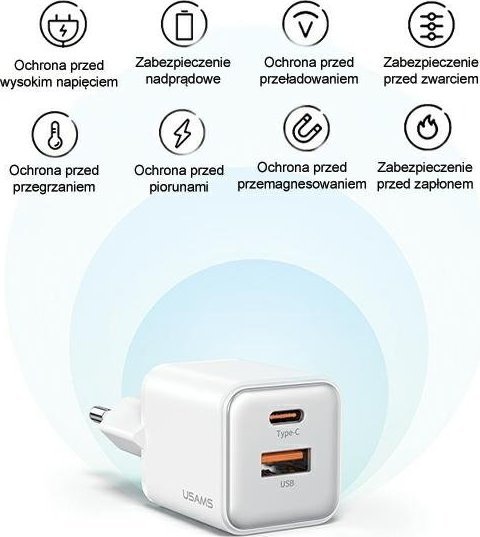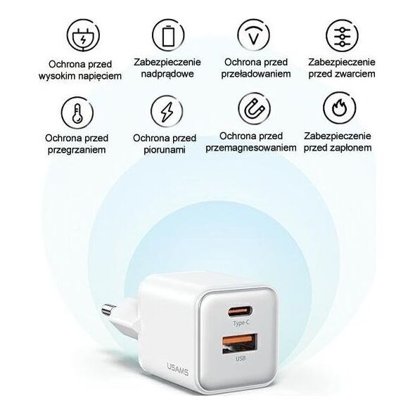 USAMS παλικάρι. δίκτυο. 1xUSB+1xUSB-C PD30W 3A (μόνο κεφαλή) PD3.0 Γρήγορη φόρτιση μαύρο/μαύρο Σειρά X-ron Παρουσιάζουμε τον φορτιστή τοίχου USAMS 30W από τη σειρά X-ron, ο οποίος συνδυάζει τις συμπαγείς διαστάσεις με τη γρήγορη φόρτιση. Αυτός ο εξαιρετικά πρακτικός φορτιστής, εξοπλισμένος με θύρες USB-A και USB-C, σας επιτρέπει να φορτίζετε άνετα και αποτελεσματικά μια ποικιλία συσκευών. Παρά τον μινιμαλιστικό σχεδιασμό του, αυτός ο φορτιστής προσφέρει εντυπωσιακή ισχύ 30 W. Το μικρό του μέγεθος το καθιστά ιδανικό για μεταφορά και καταλαμβάνει ελάχιστο χώρο στην πρίζα, κάτι που είναι εξαιρετικά πρακτικό όταν χρησιμοποιείτε πολλές συσκευές ταυτόχρονα. Ο σχεδιασμός διπλής λειτουργίας με θύρες USB-A και USB-C παρέχει ευέλικτες επιλογές γρήγορης φόρτισης. Αυτός ο φορτιστής υποστηρίζει μια ποικιλία πρωτοκόλλων όπως PD, QC, SCP, FC, AEC, PPS και Apple2.4 για να καλύψει όλες τις ανάγκες γρήγορης φόρτισης στην αγορά. Τροφοδοτούμενος από την τρίτη γενιά του τσιπ GaN, αυτός ο φορτιστής εγγυάται όχι μόνο απόδοση αλλά και χαμηλές εκπομπές θερμότητας. Χάρη σε αυτό, μπορείτε να βασίζεστε στη σταθερή λειτουργία και οι προηγμένες προστατευτικές λειτουργίες εξασφαλίζουν ασφάλεια κατά τη χρήση. Το τσιπ GaN ανταποκρίνεται επίσης στις ανάγκες των συσκευών σας, μπαίνοντας αυτόματα σε κατάσταση αναμονής όταν το επίπεδο φόρτισης φτάσει στο 80%. Επίσης, έχοντας κατά νου την αισθητική, ο φορτιστής διατίθεται σε τρία γενικά χρώματα, επιτρέποντάς σας να επιλέξετε αυτό που αντικατοπτρίζει καλύτερα το στυλ σας. Βασισμένος σε σύγχρονες λύσεις, αυτός ο φορτιστής τοίχου είναι προηγμένης τεχνολογίας σε μια κομψή έκδοση. Τεχνικά στοιχεία Μάρκα USAMS Μοντέλο US-CC189 Υλικό Διαστάσεις υπολογιστή 31 x 33 x 36 mm Βάρος Περίπου 50 g Χρώμα Μαύρο Ισχύς εισόδου 100-240V - 50/60 Hz 1A (μέγ.) Έξοδος USB-C 5V-3A, 9V-2V, 1 -2,5A, 15V-2A, 20V-1,5A (μέγ. 30W) Έξοδος USB-A 5V-4.5A, 9V-2A, 12V-1.5A USB-C + Έξοδος USB-A 5V-3A (μέγ.){Amperage} 3 A . {Amperage} 3 A . {Amperage} 3 A . {Amperage} 3 A . {Amperage} 3 A . {Amperage} 3 A . {Amperage} 3 A . {Βάρος [g]} 50 . {Βάρος [g]} 50 . {Βάρος [g]} 50 . {Βάρος [g]} 50 . {Βάρος [g]} 50 . {Βάρος [g]} 50 . {Βάρος [g]} 50 . {Charger type} Προσαρμογέας δικτύου . {Charger type} Προσαρμογέας δικτύου . {Charger type} Προσαρμογέας δικτύου . {Charger type} Προσαρμογέας δικτύου . {Charger type} Προσαρμογέας δικτύου . {Charger type} Προσαρμογέας δικτύου . {Charger type} Προσαρμογέας δικτύου . {Αριθμός εξόδων USB-A} 1 . {Αριθμός εξόδων USB-A} 1 . {Αριθμός εξόδων USB-A} 1 . {Αριθμός εξόδων USB-A} 1 . {Αριθμός εξόδων USB-A} 1 . {Αριθμός εξόδων USB-A} 1 . {Αριθμός εξόδων USB-A} 1 . {Μήκος καλωδίου} 1,1 m . {Μήκος καλωδίου} 1,1 m . {Μήκος καλωδίου} 1,1 m . {Μήκος καλωδίου} 1,1 m . {Μήκος καλωδίου} 1,1 m . {Μήκος καλωδίου} 1,1 m . {Μήκος καλωδίου} 1,1 m . {Τύπος υποδοχής καλωδίου} USB-C . {Τύπος υποδοχής καλωδίου} USB-C . {Τύπος υποδοχής καλωδίου} USB-C . {Cable Connector Type}U