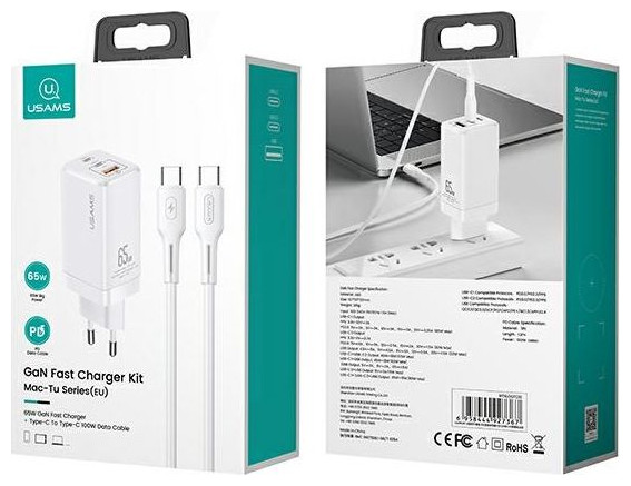 USAMS MT GaN 65W Super Fast Charge - ένας συμπαγής φορτιστής δικτύου με τεράστιες δυνατότητες με καλώδιο USB-C 100W. Η χρήση της καινοτόμου τεχνολογίας ημιαγωγών GaN (νιτρίδιο του γαλλίου) καθιστά τον φορτιστή στερεό, ελαφρύ, δεν θερμαίνεται και φορτίζει πολύ γρήγορα. Ο φορτιστής είναι εξοπλισμένος με δύο γρήγορες θύρες USB-C και μια θύρα γρήγορης φόρτισης USB-A. Υποστηρίζει όλα τα πρότυπα γρήγορης φόρτισης, όπως: Quick Charge 4.0+/3.0/2.0, Huawei SuperCharge, PD και άλλα, επιτρέποντάς σας να φορτίζετε γρήγορα όλες σχεδόν τις συσκευές της αγοράς. Υποστηρίζει γρήγορη φόρτιση Quick Charge 3.0, AFC (Samsung Adaptive Fast Charging), FCP (Huawei Fast Charger Protocol), SCP (Huawei SuperCharge Protocol), Power Delivery 45 W. Αυτό ισχύει, μεταξύ άλλων, Συσκευές iP, Huawei Matebook, Dell Inspiron ή Latitude, HP Elitebook and Spectre, Lenovo Yoga και ThinkPad. Μπορείτε να φορτίσετε το tablet, τον υπολογιστή και το τηλέφωνό σας ταυτόχρονα. Σας επιτρέπει να φορτίζετε ελεύθερα όχι μόνο τηλέφωνα, αλλά και tablet και φορητούς υπολογιστές.{Μήκος καλωδίου} 1 m. {Μήκος καλωδίου} 1 m. {Amperage} 3 A . {Amperage} 3 A . {Charger type} Προσαρμογέας δικτύου . {Charger type} Προσαρμογέας δικτύου . {Αριθμός εξόδων USB-A} 1 . {Αριθμός εξόδων USB-A} 1 . {Τύπος υποδοχής καλωδίου} USB-C . {Τύπος υποδοχής καλωδίου} USB-C . {Quick Charge} Ναι. {Quick Charge} Ναι. {Χρώμα} Λευκό . {Χρώμα} Λευκό . {Αριθμός εξόδων USB-C} 2 . {Αριθμός εξόδων USB-C} 2 . {Αριθμός φορτισμένων συσκευών} 3 . {Αριθμός φορτισμένων συσκευών} 3 . {Περιλαμβάνεται καλώδιο} Ναι. {Περιλαμβάνεται καλώδιο} Ναι. {Ισχύς φόρτισης} 65 W . {Ισχύς φόρτισης} 65 W . {Βάρος [g]} 70 . {Βάρος [g]} 70