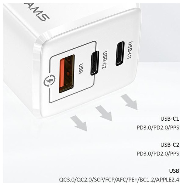 USAMS T33 US-CC110 GaN 65W Super Fast Charge - ένας συμπαγής φορτιστής δικτύου με τεράστιες δυνατότητες Η χρήση της καινοτόμου τεχνολογίας ημιαγωγών GaN (νιτρίδιο γαλλίου) κάνει τον φορτιστή στερεό, ελαφρύ, δεν θερμαίνεται και φορτίζεται πολύ γρήγορα με δύο γρήγορες θύρες USB-C και θύρα γρήγορης φόρτισης USB-A. Υποστηρίζει όλα τα πρότυπα γρήγορης φόρτισης, όπως: Quick Charge 4.0+/3.0/2.0, Huawei SuperCharge, PD και άλλα, τα οποία σας επιτρέπουν να φορτίζετε γρήγορα όλες σχεδόν τις συσκευές της αγοράς Υποστηρίζει γρήγορη φόρτιση Quick Charge 3.0, AFC (Samsung Adaptive Fast Charging) , FCP (Huawei Fast Charger Protocol), SCP (Huawei SuperCharge Protocol), Power Delivery 45 W. Αυτό περιλαμβάνει, μεταξύ άλλων: Συσκευές iP, Huawei Matebook, Dell Inspiron ή Latitude, HP Elitebook and Spectre, Lenovo Yoga και ThinkPad. Μπορείτε να φορτίσετε το tablet, τον υπολογιστή και το τηλέφωνό σας ταυτόχρονα. Σας επιτρέπει να φορτίζετε ελεύθερα όχι μόνο τηλέφωνα, αλλά και tablet και φορητούς υπολογιστές.{Amperage} 3 A . {Amperage} 3 A . {Amperage} 3 A . {Amperage} 3 A . {Amperage} 3 A . {Amperage} 3 A . {Amperage} 3 A . {Amperage} 3 A . {Amperage} 3 A . {Cable length} Δεν ισχύει. {Cable length} Δεν ισχύει. {Cable length} Δεν ισχύει. {Cable length} Δεν ισχύει. {Cable length} Δεν ισχύει. {Cable length} Δεν ισχύει. {Cable length} Δεν ισχύει. {Cable length} Δεν ισχύει. {Cable length} Δεν ισχύει. {Charger type} Προσαρμογέας δικτύου . {Charger type} Προσαρμογέας δικτύου . {Charger type} Προσαρμογέας δικτύου . {Charger type} Προσαρμογέας δικτύου . {Charger type} Προσαρμογέας δικτύου . {Charger type} Προσαρμογέας δικτύου . {Charger type} Προσαρμογέας δικτύου . {Charger type} Προσαρμογέας δικτύου . {Charger type} Προσαρμογέας δικτύου . {Αριθμός εξόδων USB-A} 1 . {Αριθμός εξόδων USB-A} 1 . {Αριθμός εξόδων USB-A} 1 . {Αριθμός εξόδων USB-A} 1 . {Αριθμός εξόδων USB-A} 1 . {Αριθμός εξόδων USB-A} 1 . {Αριθμός εξόδων USB-A} 1 . {Αριθμός