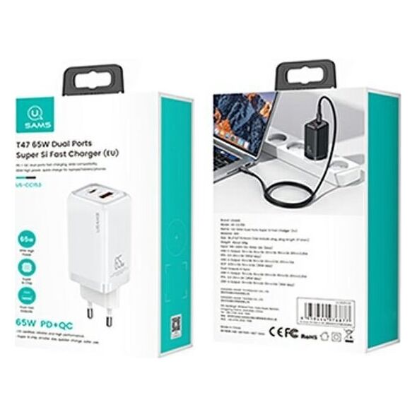 Φορτιστής Usams T47 1x USB-A 1x USB-C 3 A (CC153TC02)