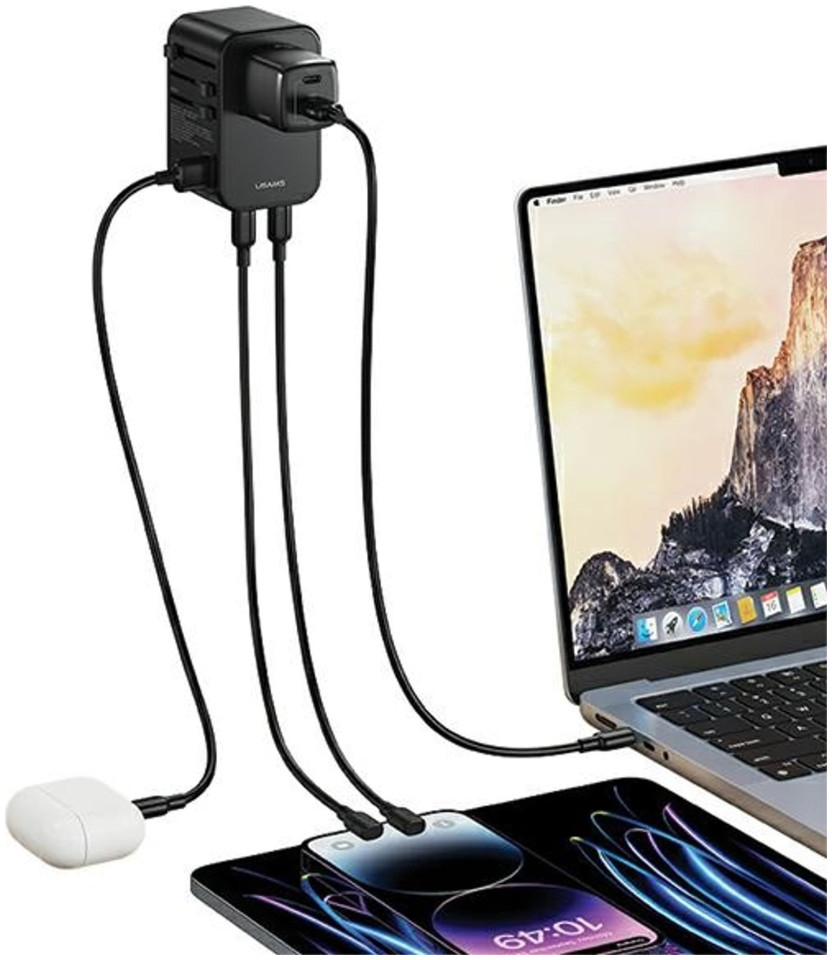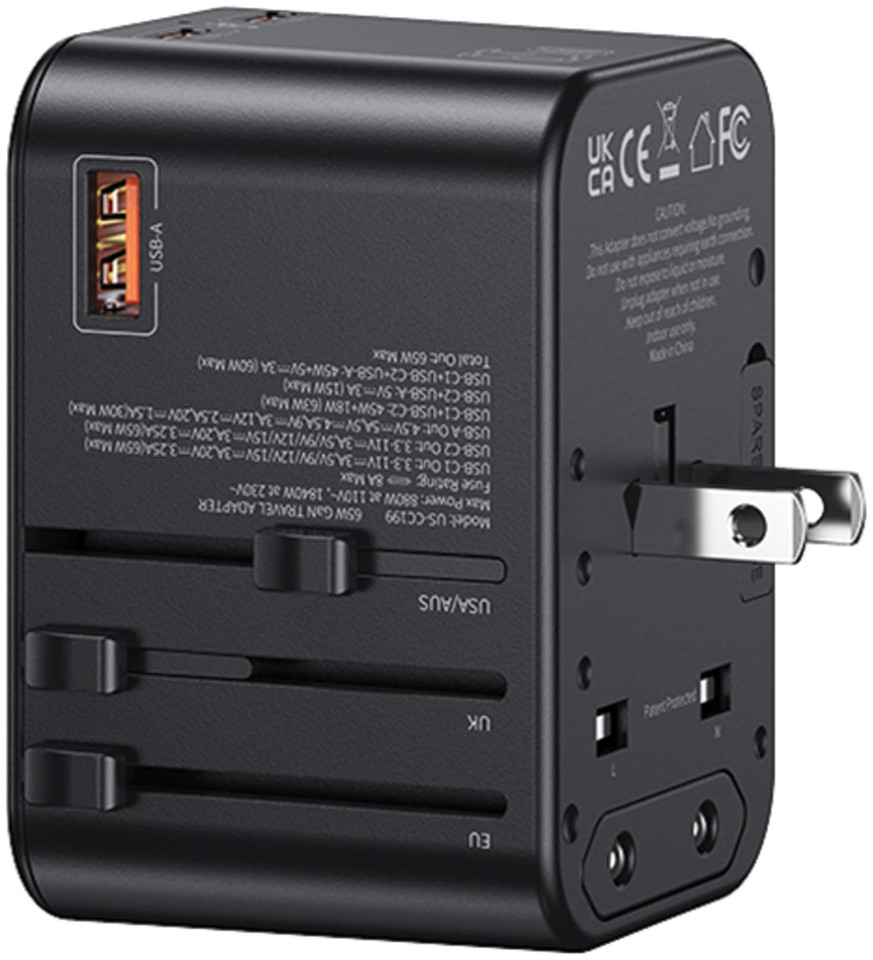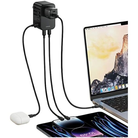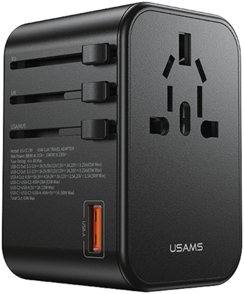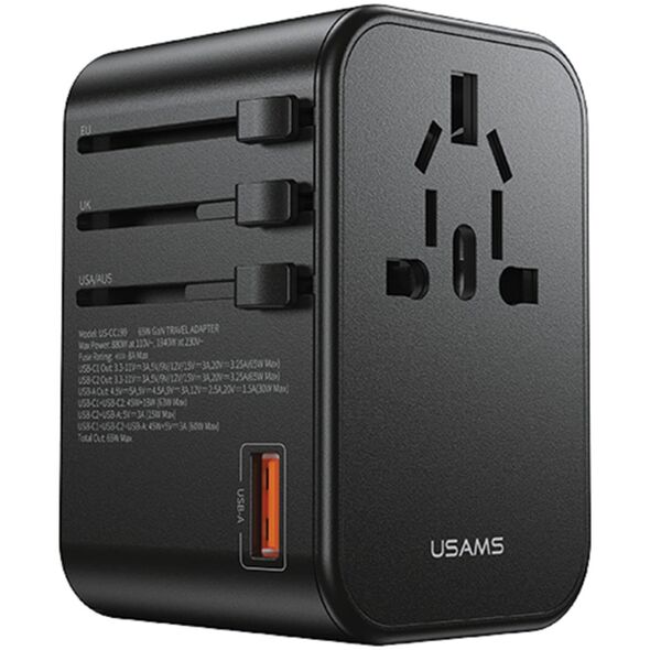 Φορτιστής Usams USAMS Αντάπτορας δικτύου 1xUSB+2xUSB-C T62 65W 4 σε 1 US/AU/EU/UK μαύρο/black CC199TC01 (US-CC199) Univesal Travel Charger