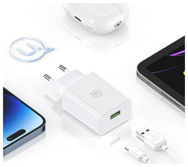 USAMS SCXLTZ03 to kompaktowa ładowarka sieciowa z jednym portem USB-A o mocy do 18 W. W zestawie znajduje się przewód USB-A → Lightning, więc od razu naładujesz iPhone’a, iPada z portem Lightning lub słuchawki AirPods. Urządzenie wspiera szybkie ładowanie i pracuje w popularnych profilach 5 V/3 A, 9 V/2 A oraz 12 V/1,5 A.