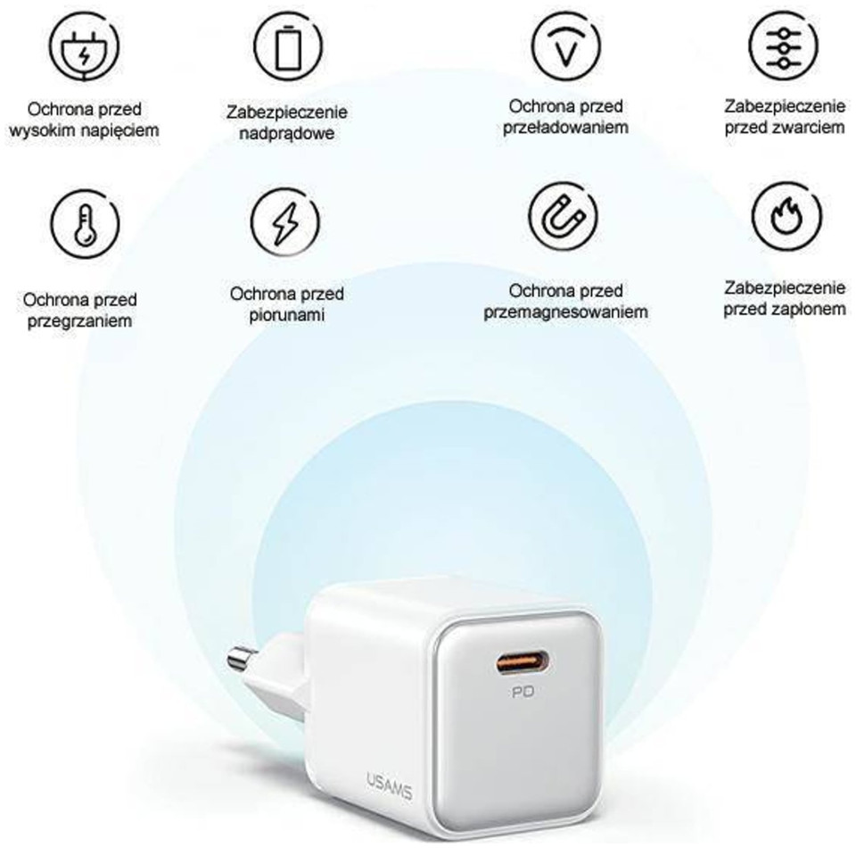 Φορτιστής USAMS USAMS Φορτιστής τοίχου 1xUSB-C PD30W 3A (μόνο κεφαλή) PD3.0 Γρήγορη Φόρτιση μωβ X-ron Series CC186TC03 (US-CC186)