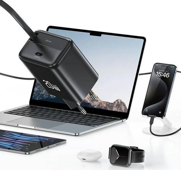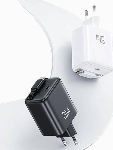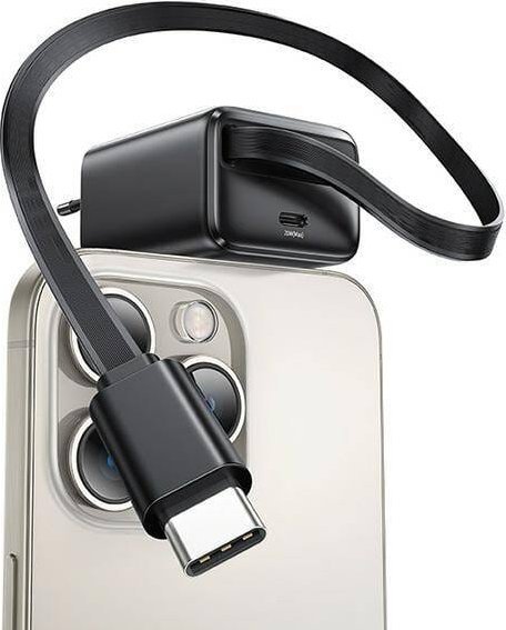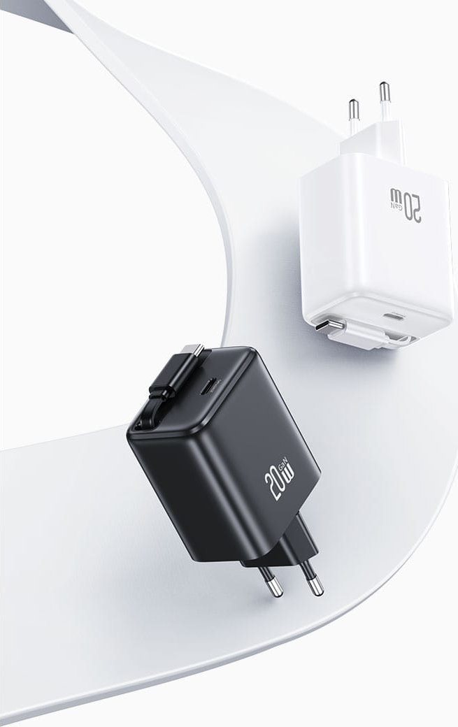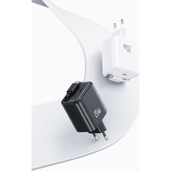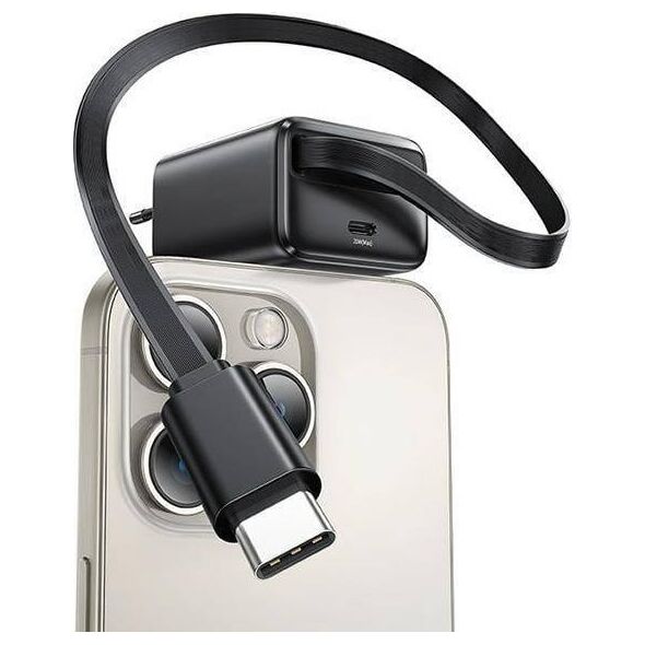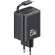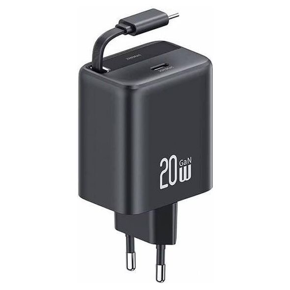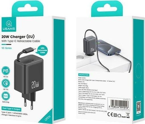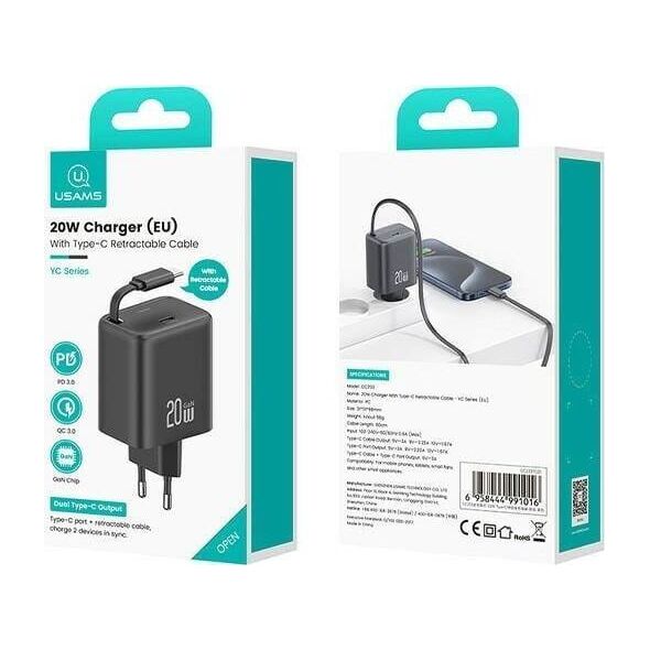 Φορτιστής USAMS USAMS Φορτιστής δικτύου 1xUSB-C με αναδιπλούμενο καλώδιο USB-C Retractable PD+QC 20W Gan Fast Charging μαύρο/black YC Series CC233TC01 (US-CC233)
