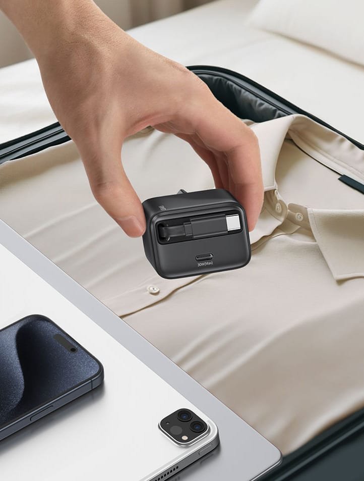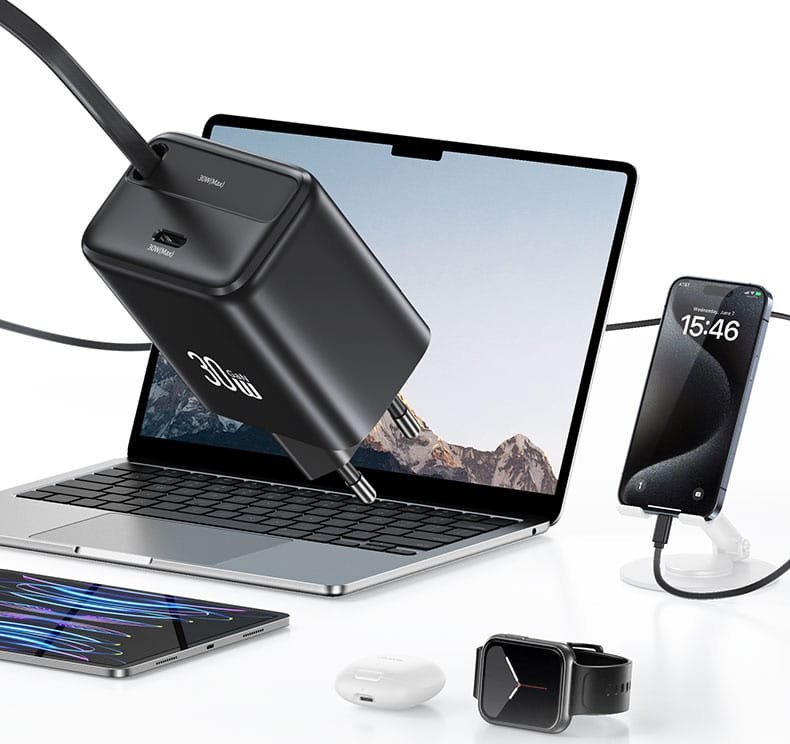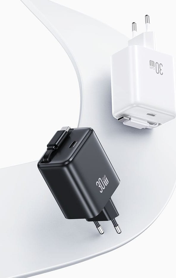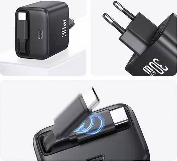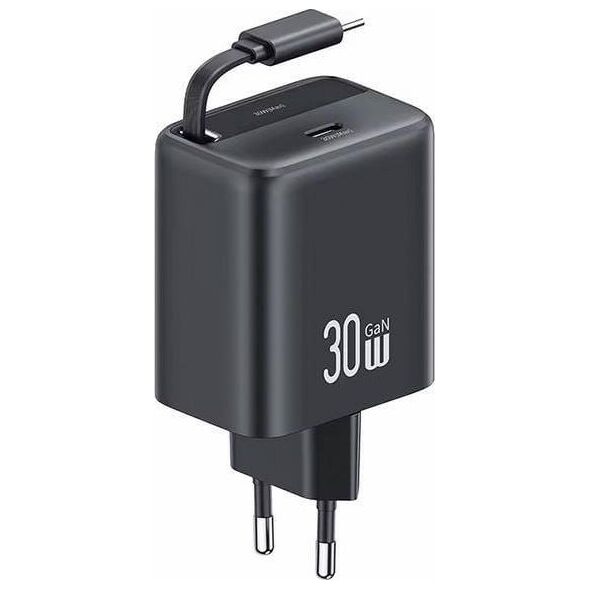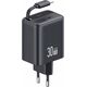 Φορτιστής Usams USAMS Φορτιστής δικτύου 1xUSB-C με αναδιπλούμενο καλώδιο USB-C Retractable PD+QC 30W Gan Fast Charging μαύρο/black YC Series CC241TC01 (US-CC241)