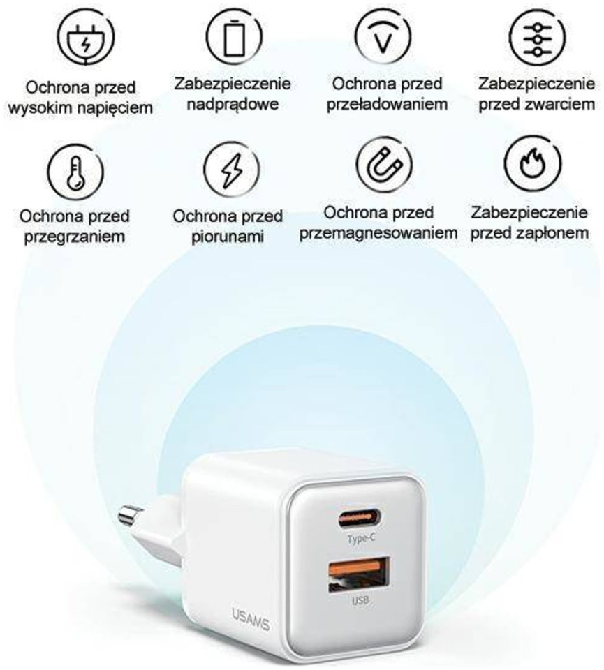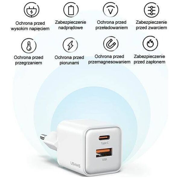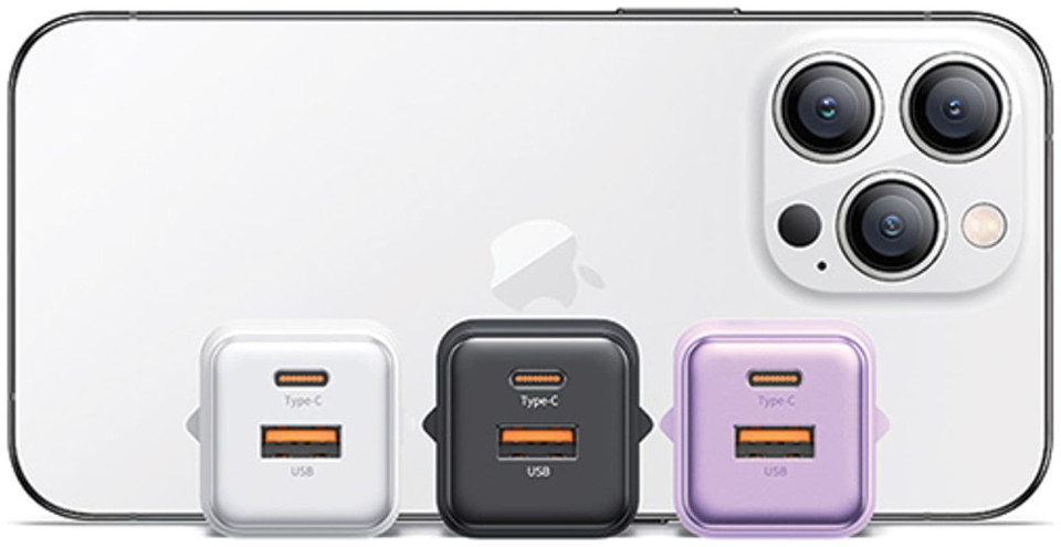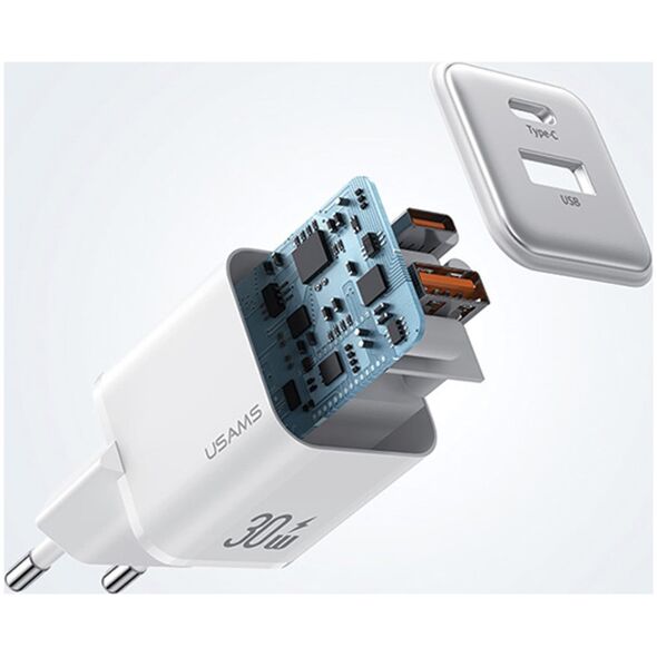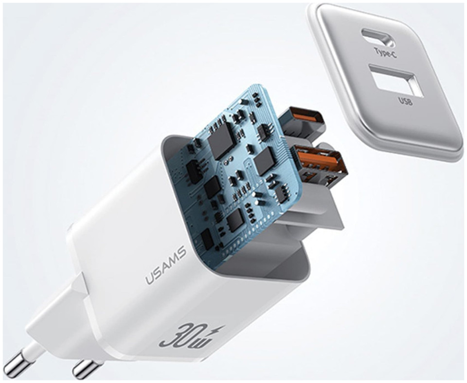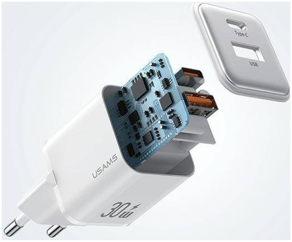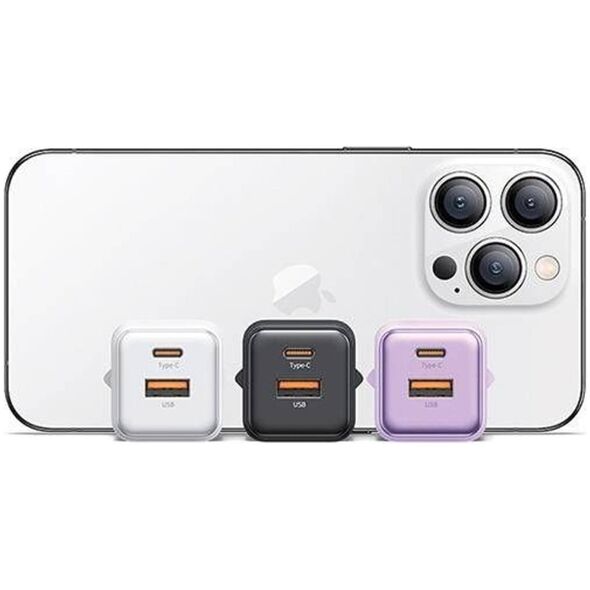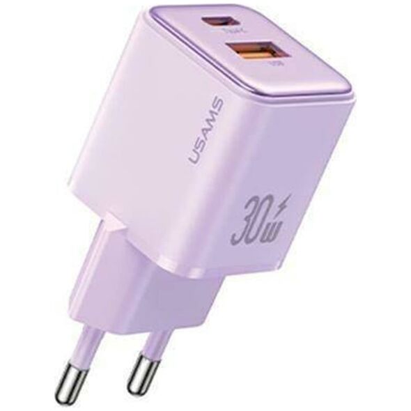 Φορτιστής USAMS USAMS Φορτιστής δικτύου 1xUSB+1xUSB-C PD30W 3A (μόνο κεφαλή) PD3.0 Γρήγορη Φόρτιση μωβ/purple X-ron Series CC189TC03 (US-CC189)