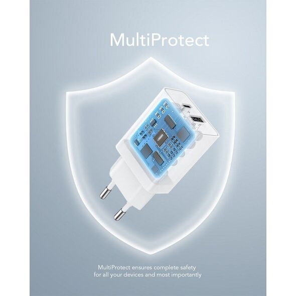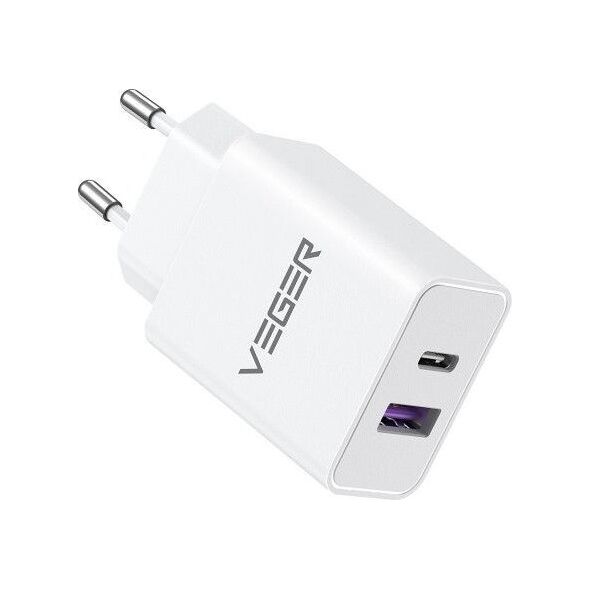 Φορτιστής Veger VEGER φορτιστής τοίχου USB A + Τύπος C PD QC3.0 3A 30W VLS302U λευκός