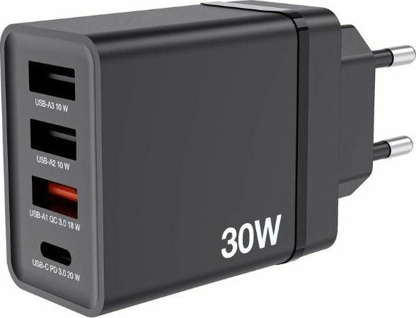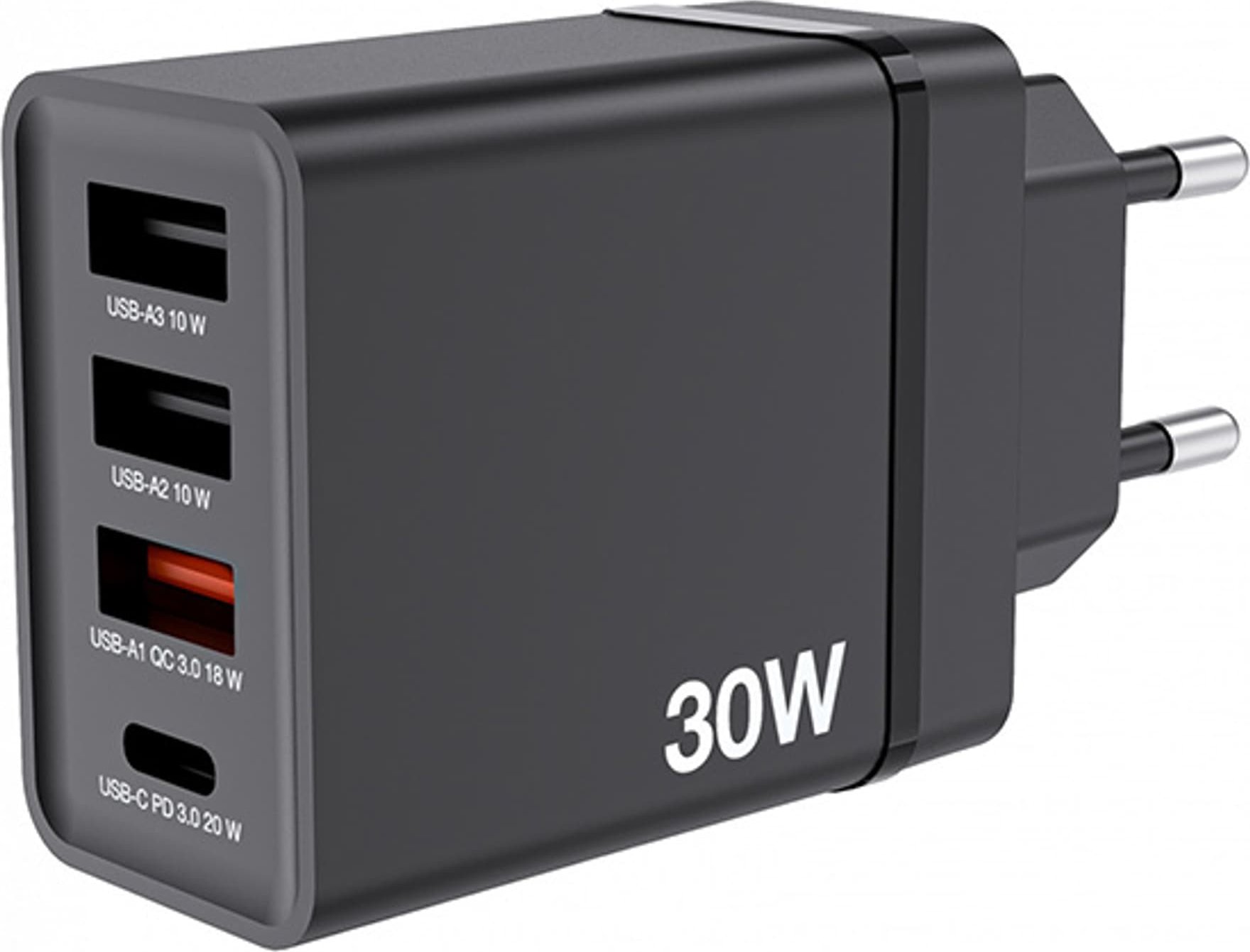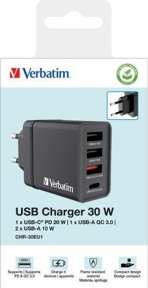 Φορτιστής Verbatim Φορτιστής τοίχου Verbatim 1xUSB-C PD 20W 1xUSB-A QC 3.0 2xUSB-A 10W UE μαύρος