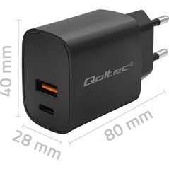 Φορτιστής QOLTEC Φορτιστής GaN Power Pro | 1xUSB-C | 1xUSB | 30W | 5-20V | 1.5-3A | Μαύρη