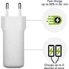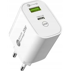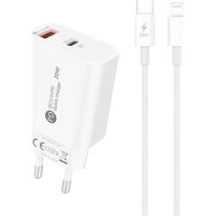 Φορτιστής Τοίχου prio Fast Charge 25W PD PPS (USB C)+QC 3.0 (USB A) λευκός PWC-1204 (4251488660675)