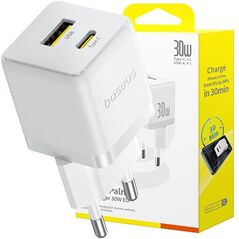 Φορτιστής τοίχου Quick Charge GaN 30W USB-A + USB-C AMIO-04286