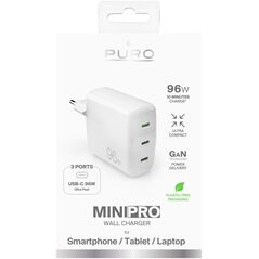 Φορτιστής Τοίχου Puro MiniPro Gan 96 W balta - Ladetajs PUFCMTCUSBCC96WGWHI (8018417469886)