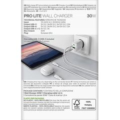 Φορτιστής τοίχου Puro PROLITE 30W USB-A / USB-C + καλώδιο USB-C - USB-C 1.2m - λευκός
