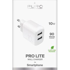 Φορτιστής τοίχου Puro PROLITE 10W 2x USB-A - λευκός