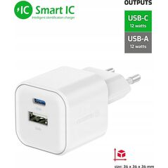 Φορτιστής τοίχου Puro PROLITE 20W USB-A / USB-C + καλώδιο USB-C - USB-C 1.2m - λευκός