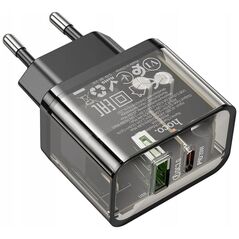 Φορτιστής τοίχου για τηλέφωνο HOCO USB A + USB C QC3.0 PD 3A 20W N34 διαφανής