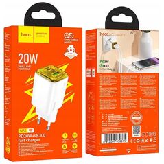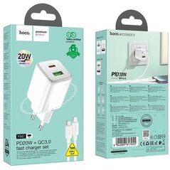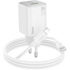 Φορτιστής τοίχου για τηλέφωνο HOCO USB A + USB C QC PD 3A 20W + καλώδιο USB C σε Lightning N41 λευκό