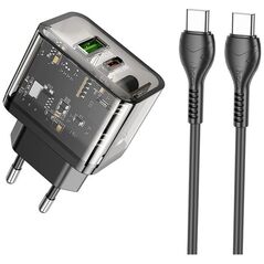 Φορτιστής τοίχου για τηλέφωνο HOCO USB A + USB C QC3.0 PD 3A 20W + καλώδιο USB C σε USB C N34 διαφανής