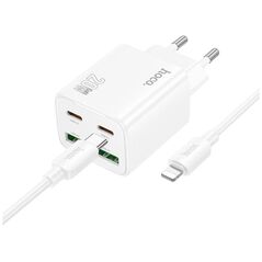 Φορτιστής τοίχου για τηλέφωνο HOCO 2 x USB C + 2 x USB A QC3.0 PD 3A 20W + καλώδιο USB C σε Lightning N55 λευκό