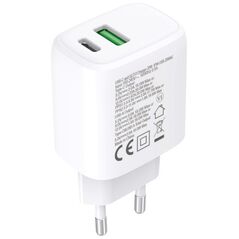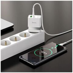 Φορτιστής τοίχου για τηλέφωνο HOCO USB A + USB C QC3.0 PD 3A 20W N41 λευκή