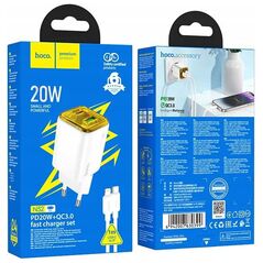 Φορτιστής τοίχου για τηλέφωνο HOCO 2 x USB C + 2 x USB A QC3.0 PD 3A 20W + καλώδιο USB C σε USB C N55 λευκός