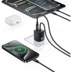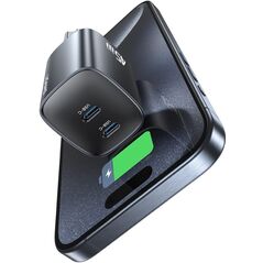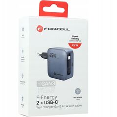 Φορτιστής τοίχου για τηλέφωνο Forcell F-Energy Ultra Slim GaN III 2 x USB C PD QC4.0 3A 45W B245201(2C) μαύρη