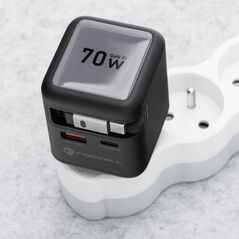 Φορτιστής τοίχου για τηλέφωνο Forcell F-Energy GaN USB C + USB A + αναδιπλούμενο καλώδιο USB C PD QC4.0 3A 70W VT-R7 γκρι