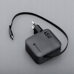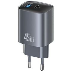 Φορτιστής τοίχου για τηλέφωνο FORCELL F-Energy GaN USB C + αναδιπλούμενο καλώδιο USB C PD QC4.0 3A 45W VT-R5 γκρι