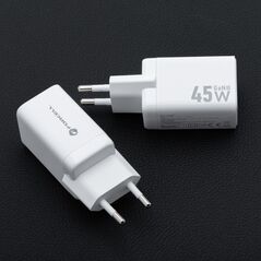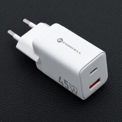 Φορτιστής τοίχου για τηλέφωνο FORCELL F-Energy Mini GaN III USB C + USB A PD QC4.0 45W VT-36 λευκός