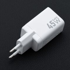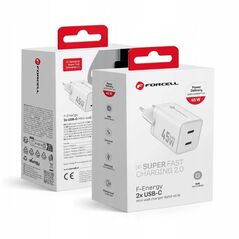 Φορτιστής τοίχου για τηλέφωνο FORCELL F-Energy Mini GaN III 2 x USB C PD QC4.0 45W VT-36B λευκός