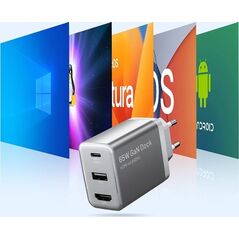 Φορτιστής τοίχου με θύρα USB + USB-Cx2 PD 65W GaN μαύρη
