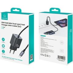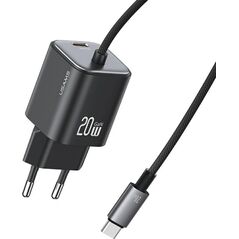Φορτιστής τοίχου ΕΕ 20W 1X USB-C/20W USB-PD USB C-C καλώδιο 1M μαύρο