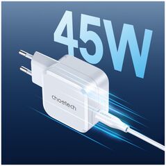 Φορτιστής Choetech Choetech γρήγορος φορτιστής τοίχου USB C 45W PPS / PD λευκός (PD8007)