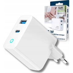 Γρήγορος φορτιστής Gembird GEMBIRD USB GaN 2-θυρών 65W USB Τύπου-C + USB-A LED λευκός