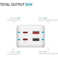 Φορτιστής Gembird 1x USB-A 2x USB-C (TA-UC-PDQC65-01-W)