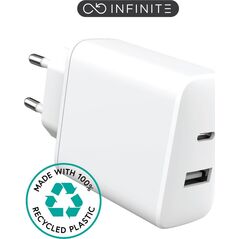 Φορτιστής Genius GENIUS PD-20AC, 20W, γρήγορη φόρτιση, USB-C PD3.0, USB-A QC3.0, λευκό